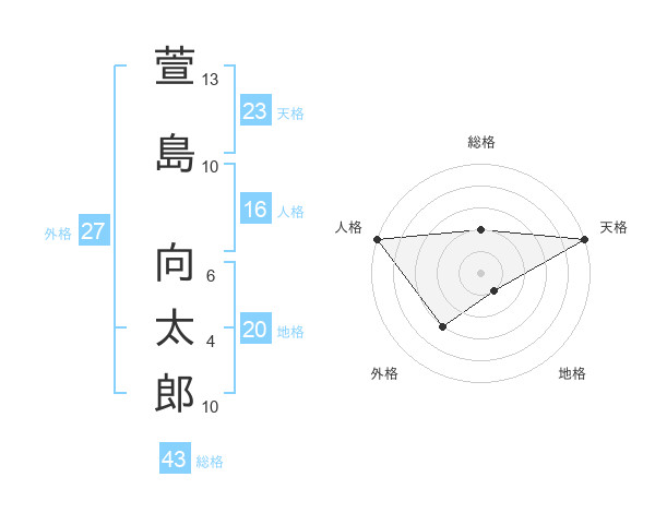 萱島 向太郎さんの天格は23画の5点!