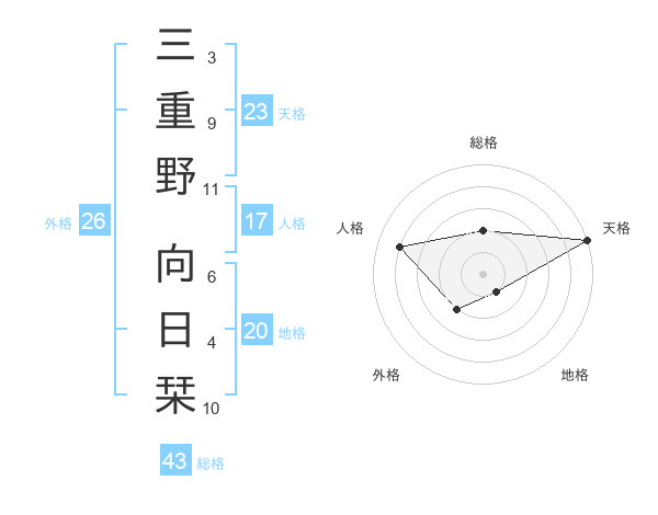 三重野 向日栞さんを姓名の画数から五運を鑑定