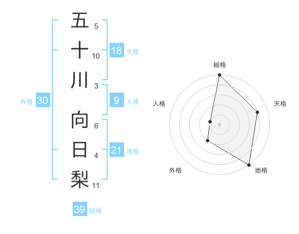 五十川 向日梨さんを姓名の画数から五運を鑑定