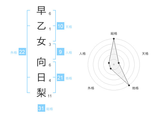 早乙女 向日梨さんを姓名の画数から五運を鑑定