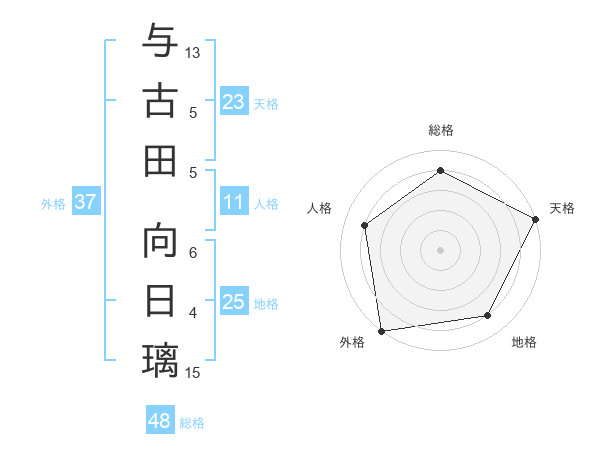 与古田 向日璃さんを姓名の画数から五運を鑑定