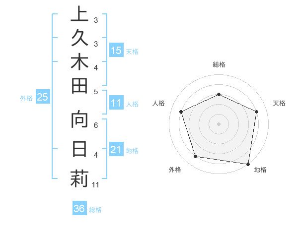 上久木田 向日莉さんを姓名の画数から五運を鑑定