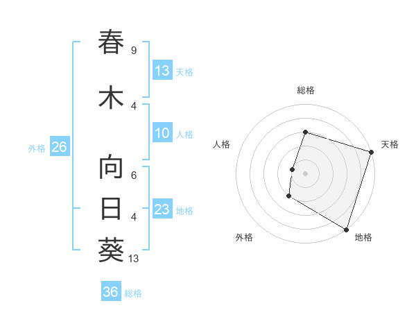 春木 向日葵さんの天格は13画の5点!