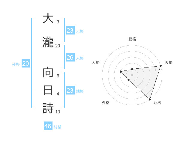 大瀧 向日詩さんを姓名の画数から五運を鑑定