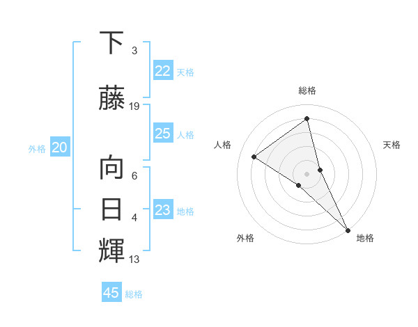 下藤 向日輝さんの総格は45画の4点!