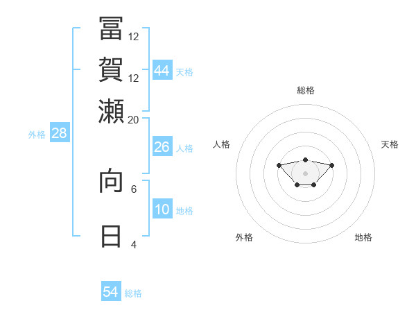 冨賀瀬 向日さんを姓名の画数から五運を鑑定