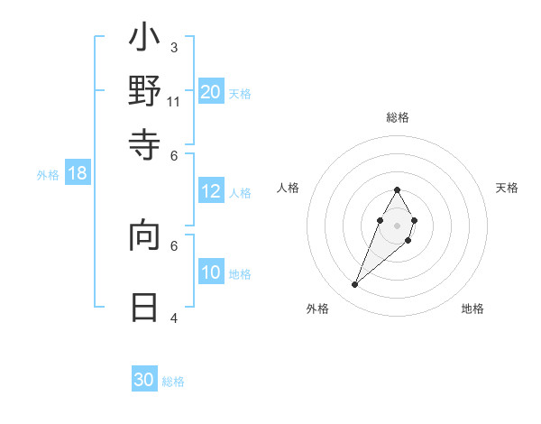 小野寺 向日さんを姓名の画数から五運を鑑定