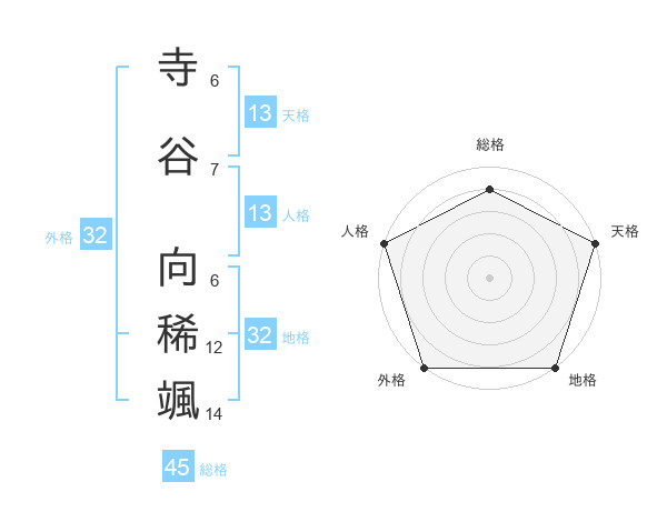 寺谷 向稀颯さんの総格は45画の4点!