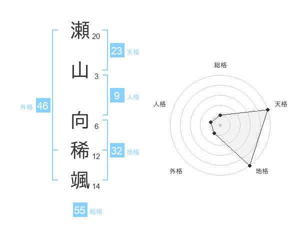 瀬山 向稀颯さんの天格は23画の5点!