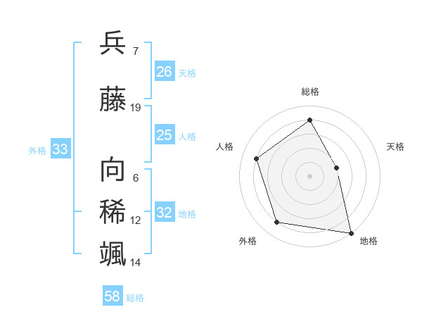 兵藤 向稀颯さんを姓名の画数から五運を鑑定