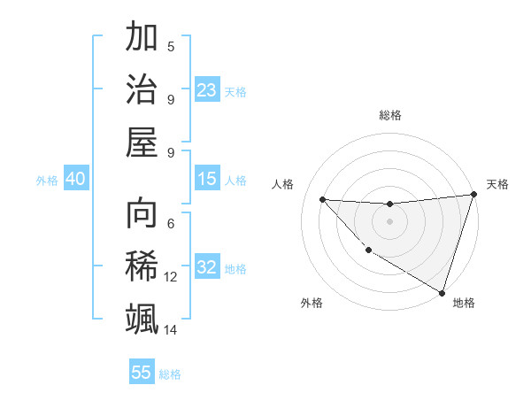 加治屋 向稀颯さんを姓名の画数から五運を鑑定