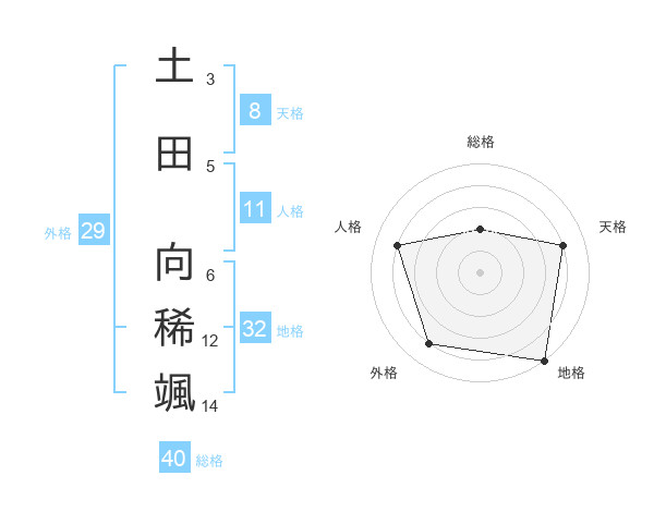 土田 向稀颯さんを姓名の画数から五運を鑑定