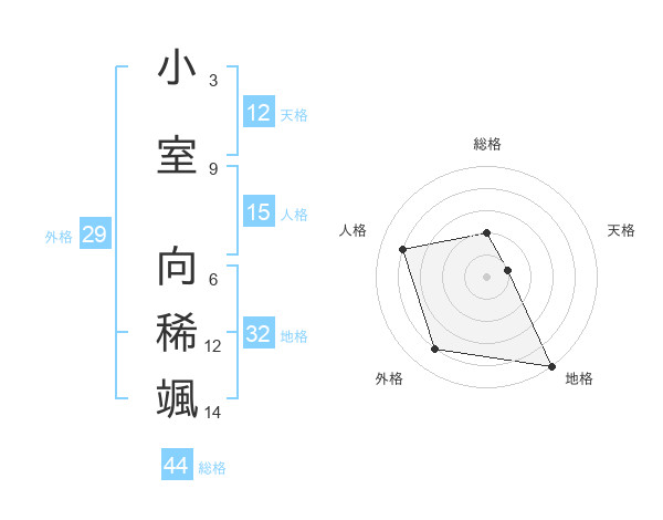 小室 向稀颯さんを姓名の画数から五運を鑑定