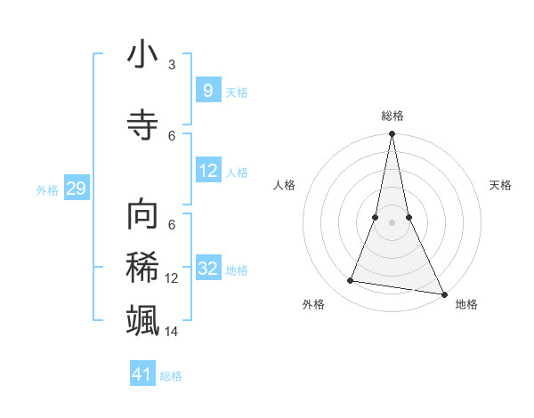 小寺 向稀颯さんの総格は41画の5点!
