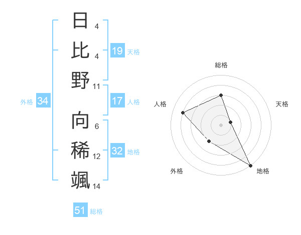 日比野 向稀颯さんを姓名の画数から五運を鑑定