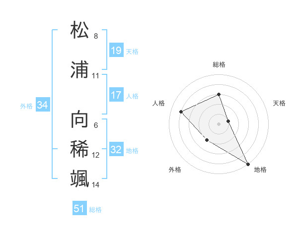 松浦 向稀颯さんの総格は51画の3点!