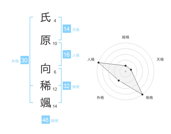 氏原 向稀颯さんを姓名の画数から五運を鑑定