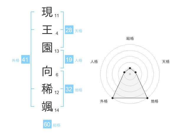 現王園 向稀颯さんの総格は60画の1点!