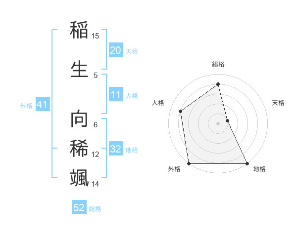 稲生 向稀颯さんを姓名の画数から五運を鑑定