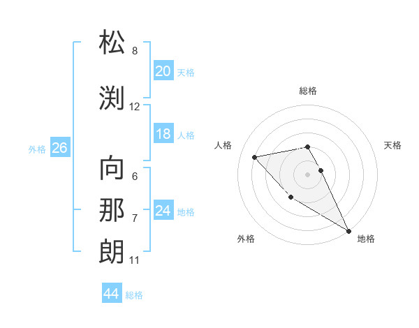 松渕 向那朗さんを姓名の画数から五運を鑑定