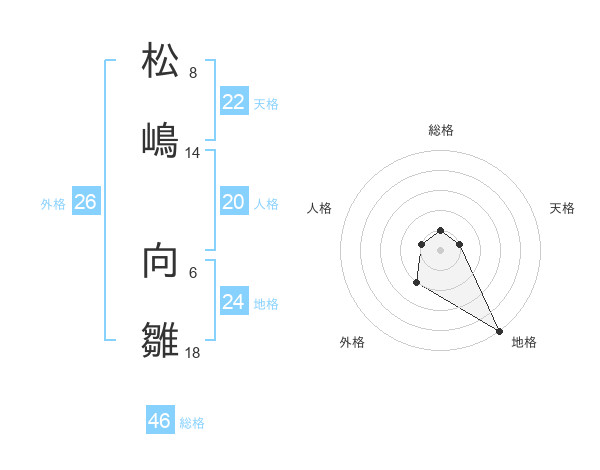 松嶋 向雛さんを姓名の画数から五運を鑑定