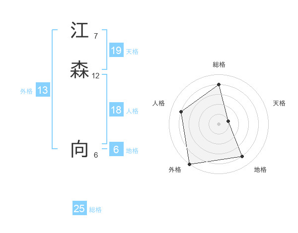 江森 向さんの総格は25画の4点!