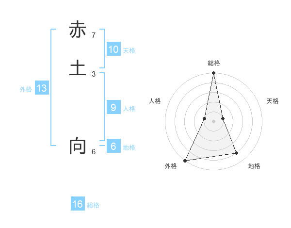 赤土 向さんの総格は16画の5点!