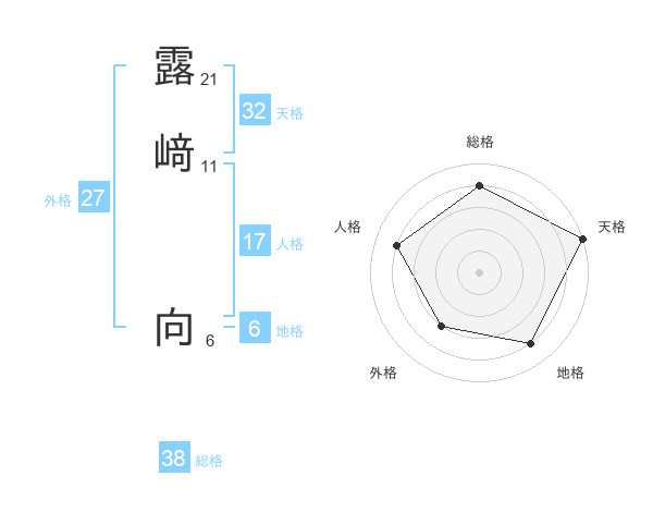 露﨑 向さんの総格は38画の4点!