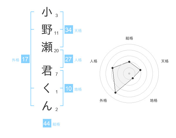 小野瀬 君くんさんの総格は44画の2点!
