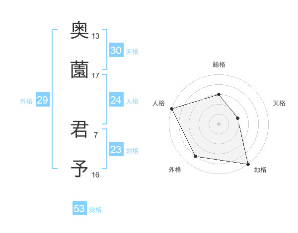 奥薗 君予さんを姓名の画数から五運を鑑定