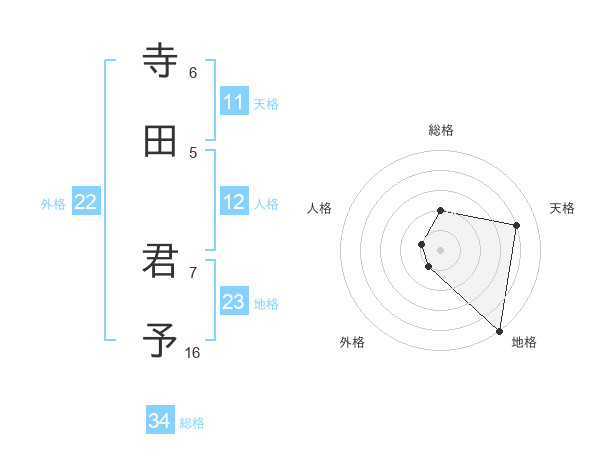 寺田 君予さんの天格は11画の4点!