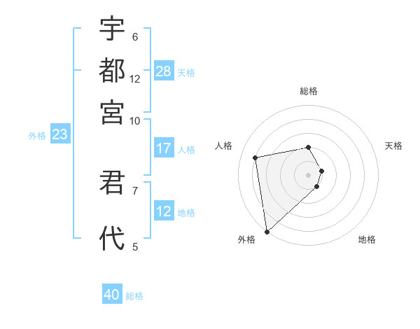 宇都宮 君代さんを姓名の画数から五運を鑑定