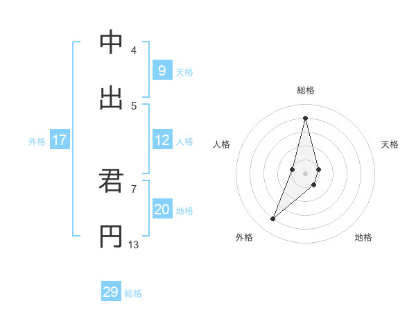 中出 君円さんの総格は29画の4点!