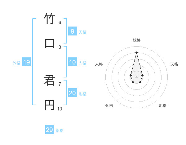 竹口 君円さんの総格は29画の4点!