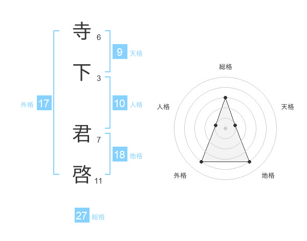 寺下 君啓さんの総格は27画の3点!