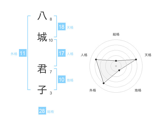 八城 君子さんの天格は18画の4点!