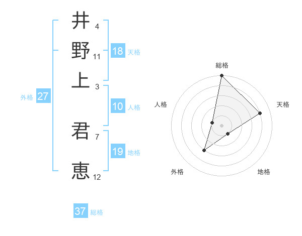井野上 君恵さんの総格は37画の5点!