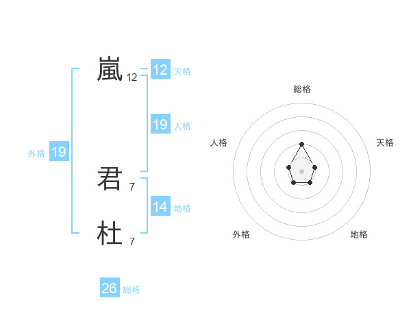 嵐 君杜さんを姓名の画数から五運を鑑定