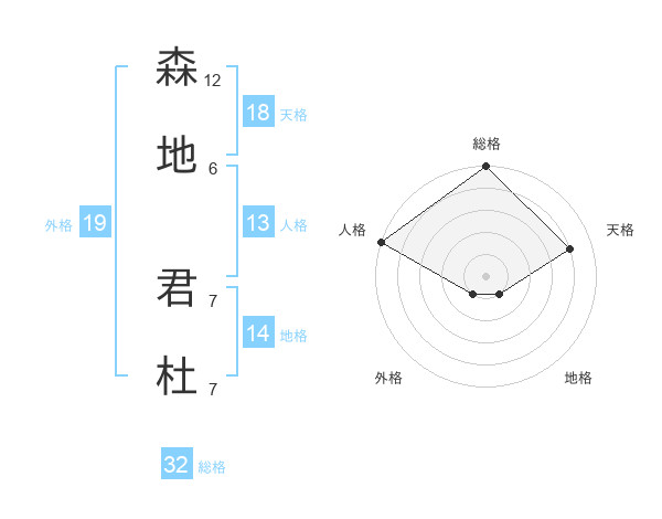 森地 君杜さんの総格は32画の5点!