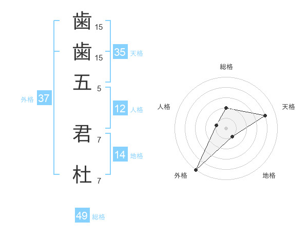 歯歯五 君杜さんの外格は37画の5点!
