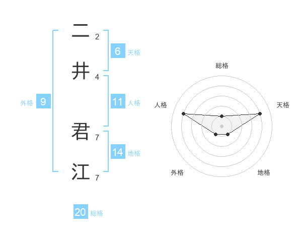 二井 君江さんの総格は20画の1点!