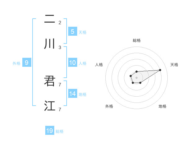 二川 君江さんの天格は5画の4点!