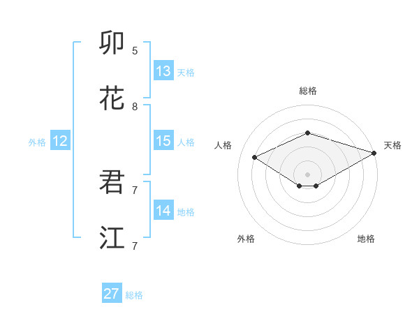 卯花 君江さんの天格は13画の5点!