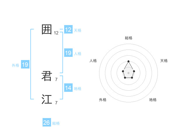 囲 君江さんの総格は26画の2点!