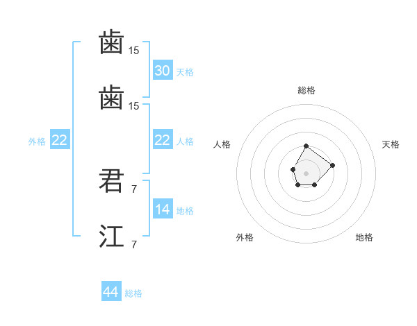 歯歯 君江さんを姓名の画数から五運を鑑定