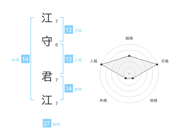 江守 君江さんの天格は13画の5点!