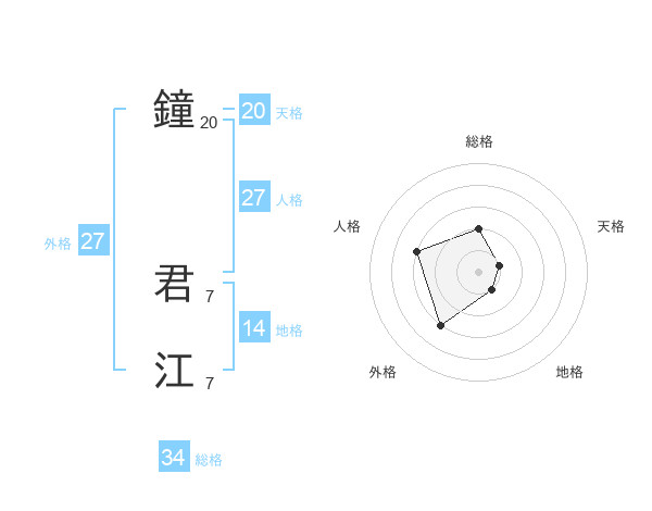 鐘 君江さんの総格は34画の2点!