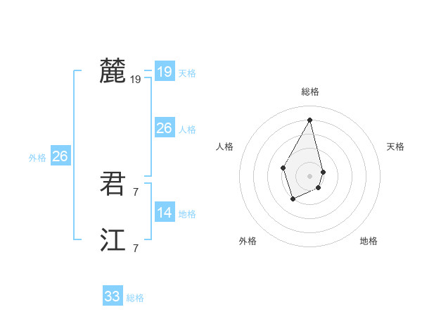 麓 君江さんの総格は33画の4点!