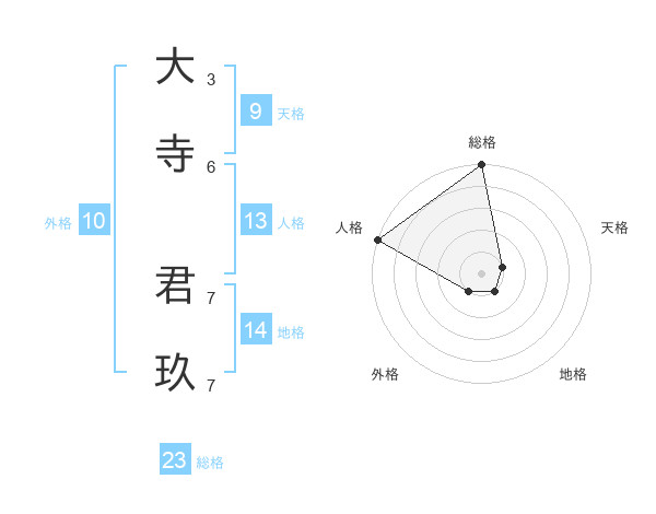 大寺 君玖さんを姓名の画数から五運を鑑定