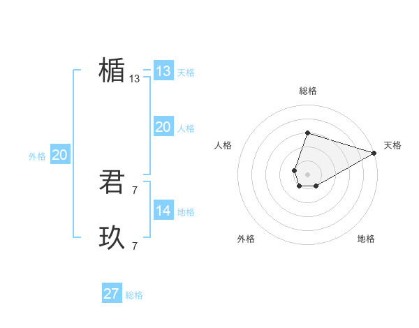 楯 君玖さんの天格は13画の5点!